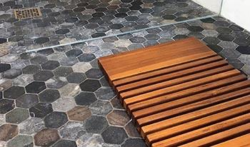 Bender’s bathroom tile selection is vast — we offer countless options in assorted colors, textures, shapes, and styles. If you’re selecting a new tile floor for a bathroom remodel that you plan to utilize as you age, we recommend choosing an option that isn’t known to be very slippery or slick. For example, a glossy marble in a large cut may not be the best choice for you. Rather, small tiles that utilize more grout in their design may offer more texture under foot. Alternatively, a textured tile may also add some traction to the bathroom floor. In short, we recommend choosing an option that offers a nice amount of “grip.”